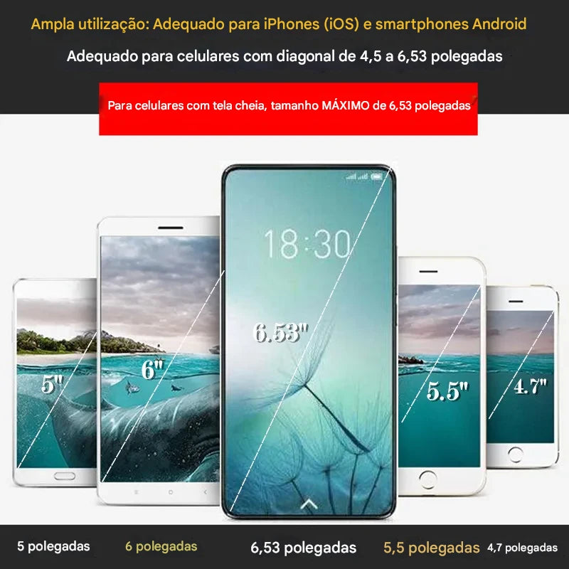 Compatibilidade ampla: Funciona com smartphones iOS e Android com telas de 4,5 a 6,53 polegadas.