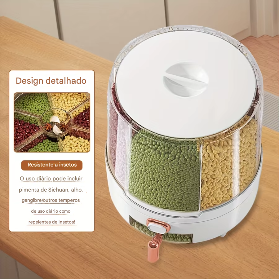 Descrição do Produto – Dispensador Giratório de Grãos com 6 Compartimentos