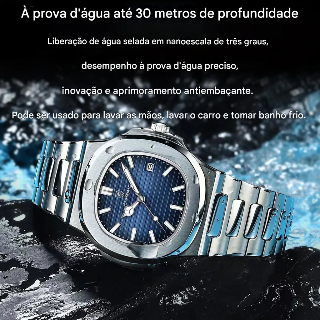 Relógio Masculino POEDAGAR Quartz em Aço Inoxidável – Caixa Quadrada