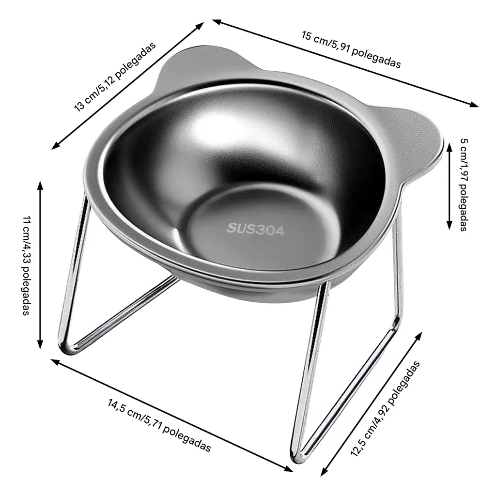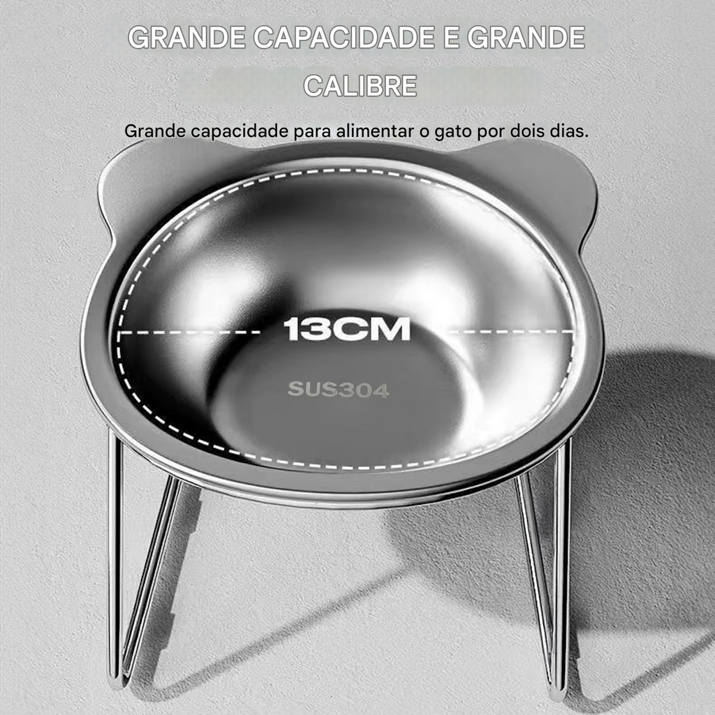 Comedouro Elevado para Gatos em Aço Inoxidável com Suporte