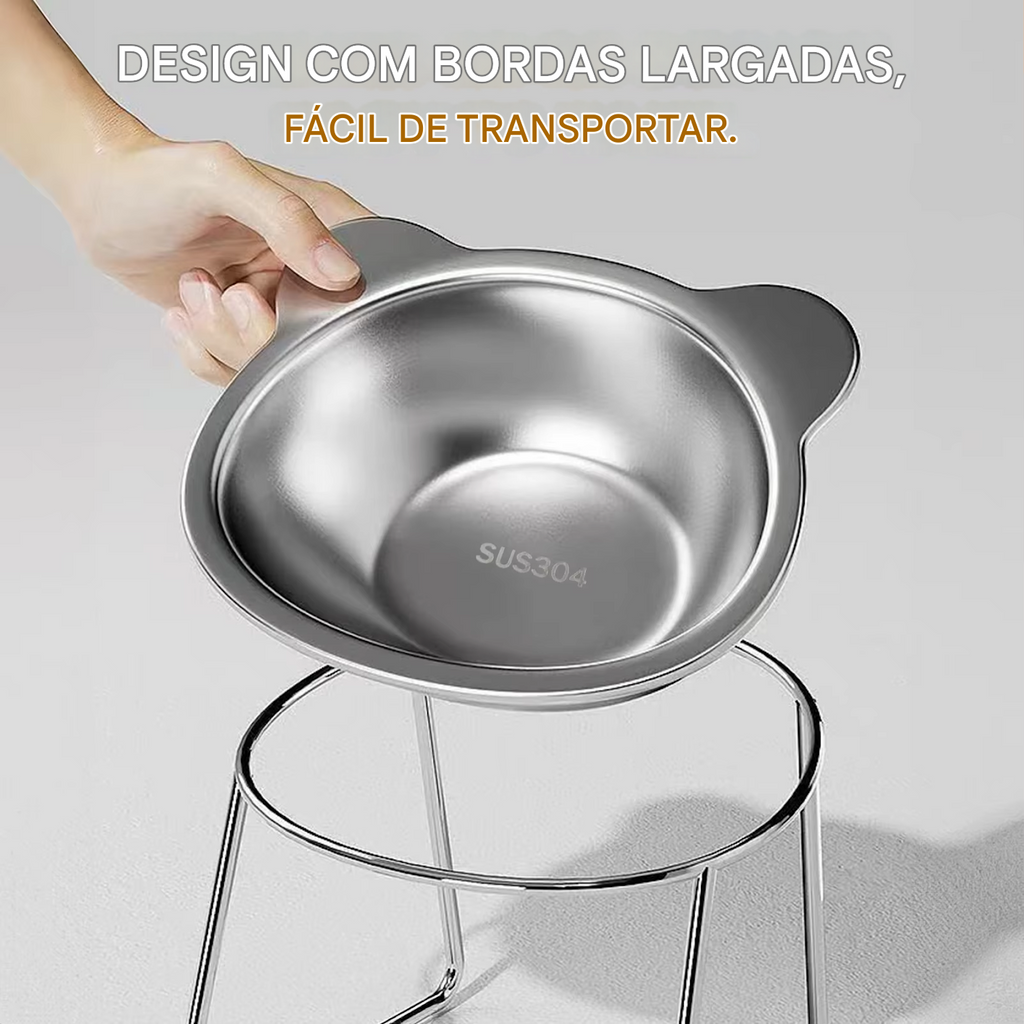 1 Comedouro Elevado em Aço Inoxidável com Suporte