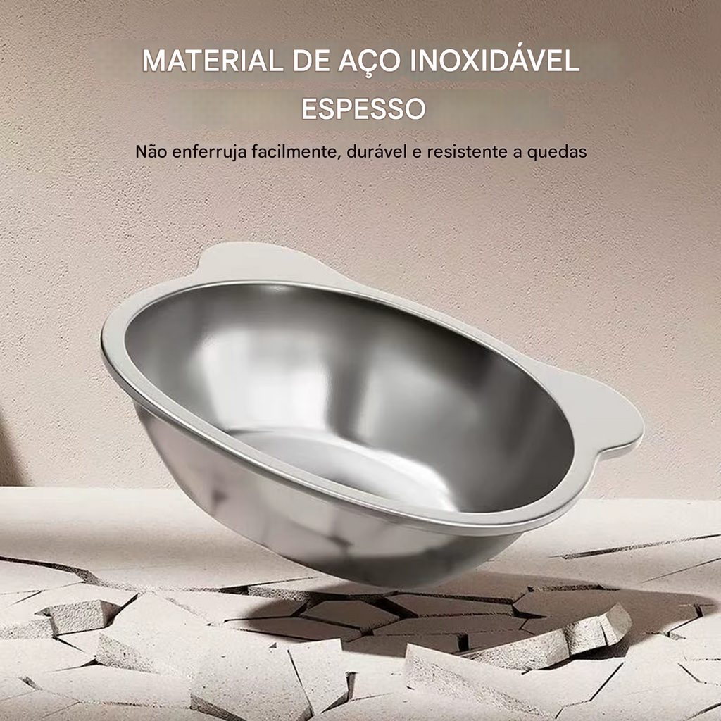 Fabricado em aço inoxidável de alta qualidade, é resistente, durável e fácil de limpar. O suporte metálico antiderrapante evita deslizamentos e derramamentos, garantindo mais segurança durante o uso.